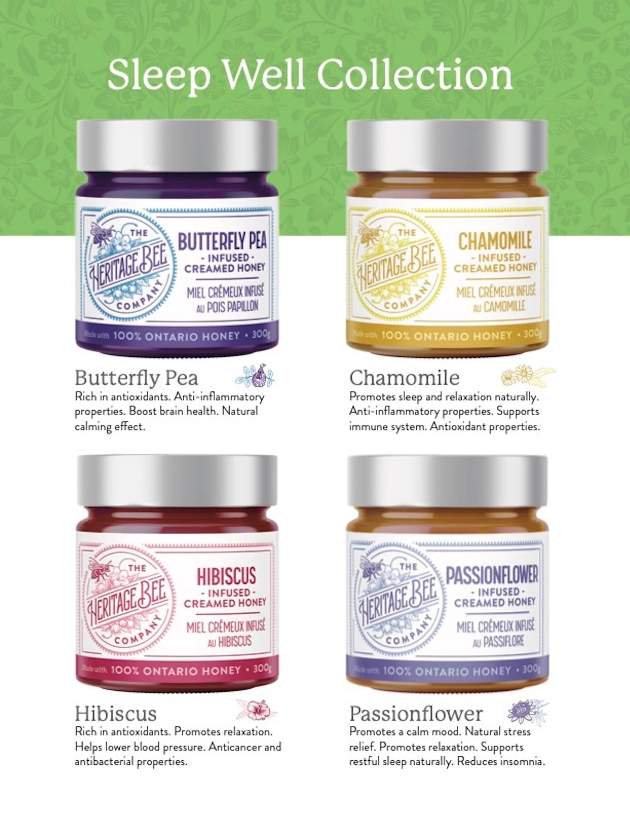 Each SLEEP WELL Gourmet Honey Gift Set Includes 4 jars:
